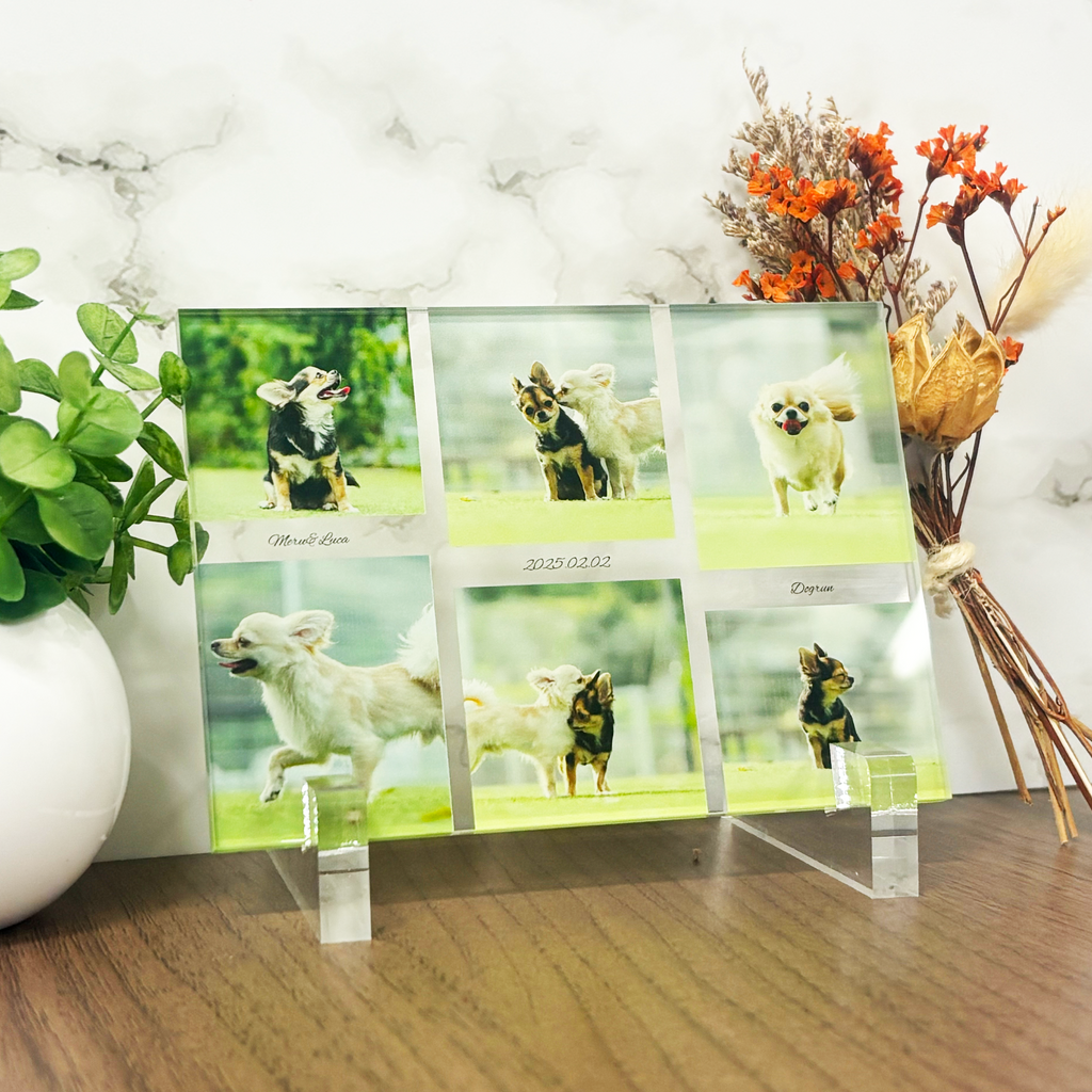 お好きな写真を6枚までアクリルパネルに印刷できます。