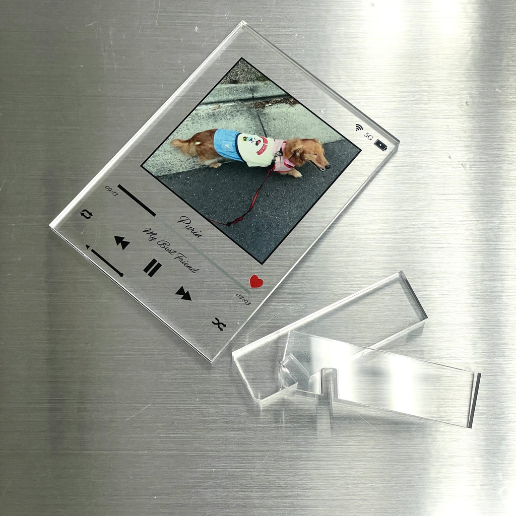 ・透明のアクリル板にUVインクで印刷しています。濡れたもので拭いたりするとインクが剥がれる場合がございます。